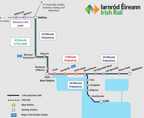 Initial work is already complete, with a new platform, signalling, and junction upgrades at Kent Station. The project to install twin tracks between Glounthaune and Midleton is on track to be finished this year.